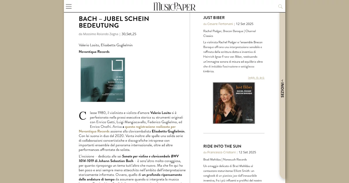 Recensione su MusicPaper di Jubel Schein Bedeutung di Massimo Rolando Zegna
