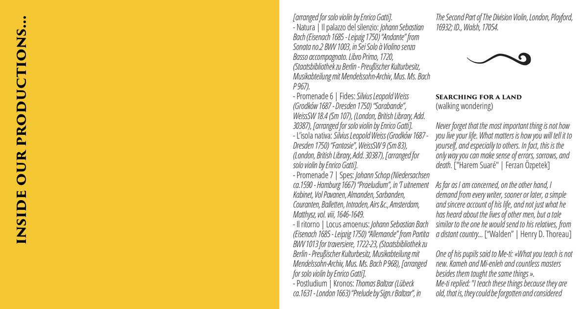 Il ritorno | Locus amoenus: Johann Sebastian Bach (Eisenach 1685 - Leipzig 1750) ‘Allemande” from Partita BWV 1013 for traversiere, 1722-23, (Staatsbibliothek zu Berlin - Preupischer Kulturbesitz, Musikabteilung mit Mendelssohn-Archiv, Mus. Ms. Bach P.968), [arranged for solo violin by Enrico Gatti].